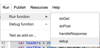 Run the setup function. In the Script Editor, go to Run –> Run Function –> setup. This will prepare the code.